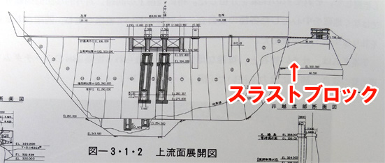 色々、地形と地質を検討した結果、河床プラグと右岸にスラストブロックを使う事になったらしい