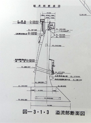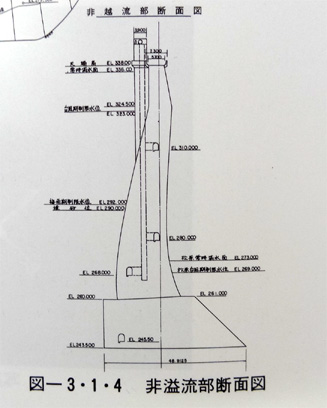 あまりにも堤体が立っている事に吃驚しましたが、図面を見るとそのつくりに納得できます。