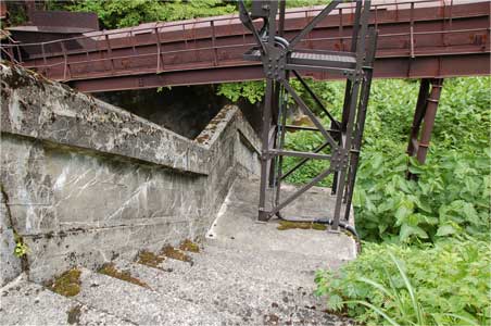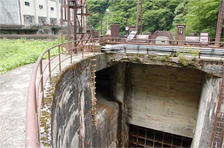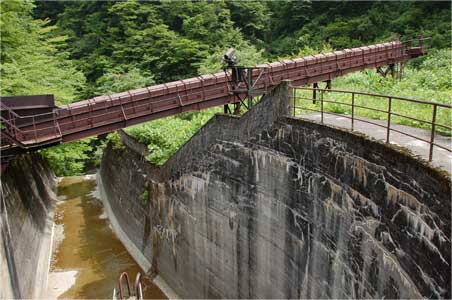 ベルトコンベアを見た後に余水吐の横にやってきました。