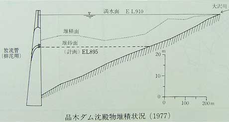 昭和63年から品木ダムでは10年計画で525,000㎥の堆積した沈殿物を浚渫する事になりました。