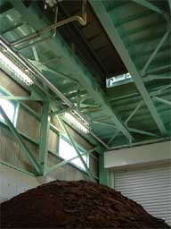 山の上には二番目の受泥槽がありその横には脱水機があります。
