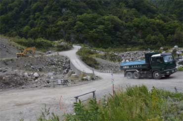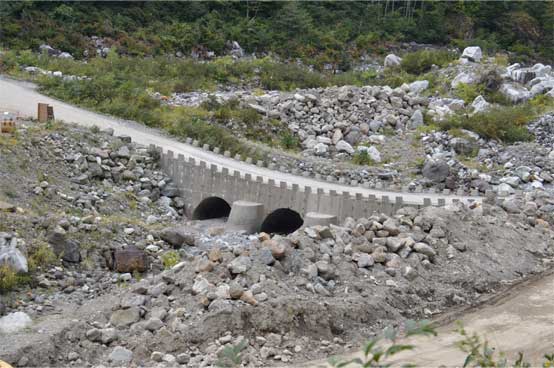 なんという過酷な崩壊地の工事現場。