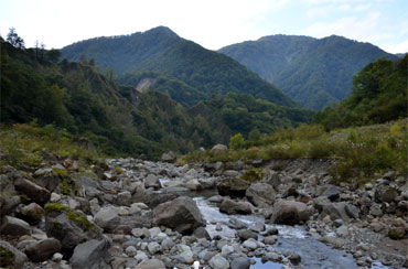 ひとたび雨が降ればここはこれだけの岩が流れてくる川の横なのです。