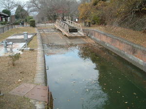 インクラインの天辺の琵琶湖側にはすぐそこまで水がきています。
