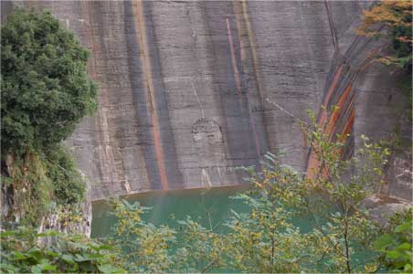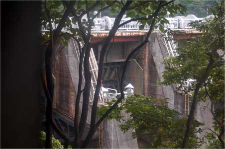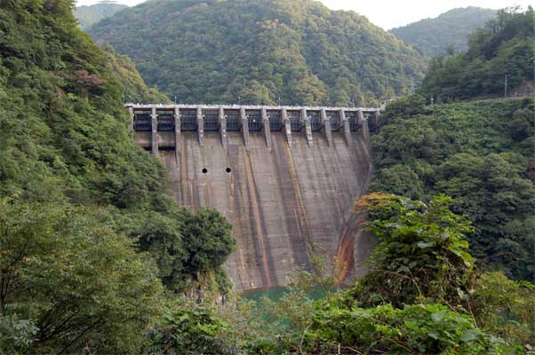 鞍部ダムのコンクリートの切断面は仮排水路跡で