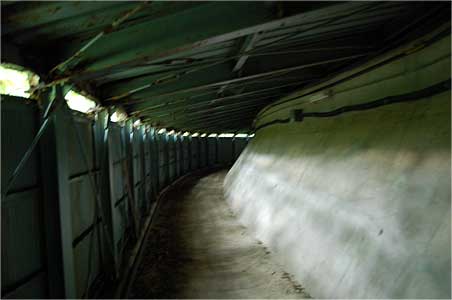 通路は細くて山の斜面に合わせて曲がっていて先が見通せなくて