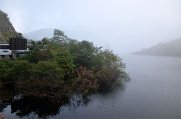 天端から見るダム湖です。