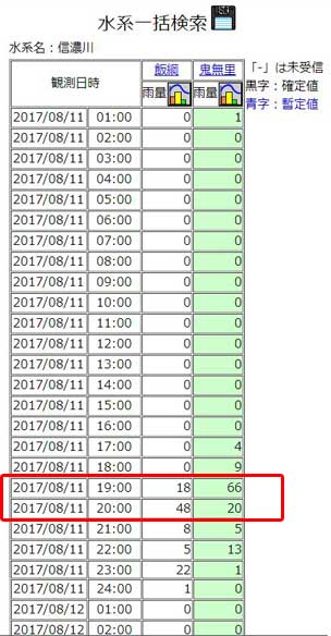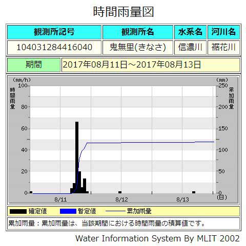 鬼無里地点ではなんと66mm/hという雨量が観測されました。