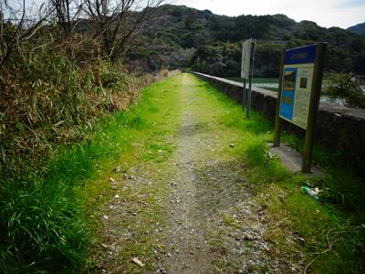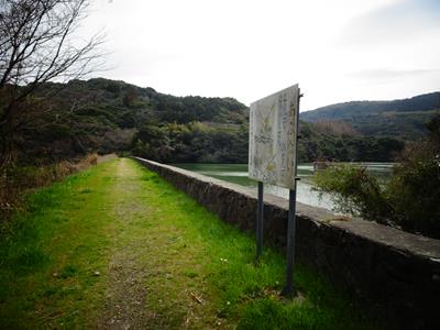 そして貯水池側にまっすぐ伸びる石造りの波除堤。