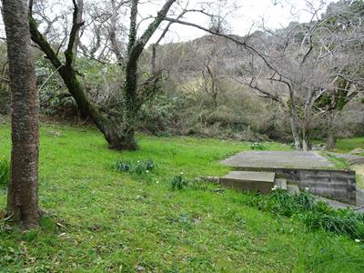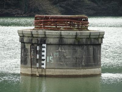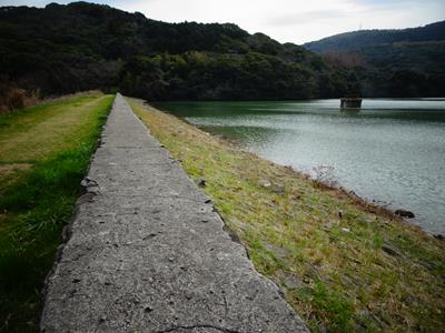 貯水池上流方向を見ると、もうひとつ堰堤があり
