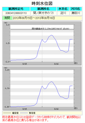 一か所の水位観測所のデータだけを追いかけると色々騙されます。