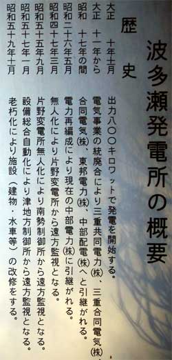 こちらの波多瀬発電所の詳しい説明板に色々な情報がありました。