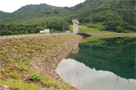 上流面を見るとああ、ロックフィルだね〜というこの景観ですが・・。