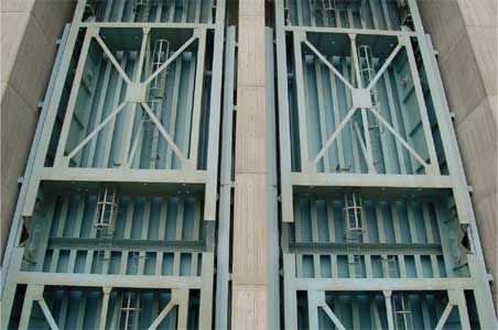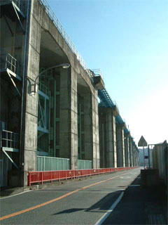 見えている堤体の高さの殆どに匹敵するこのローラーゲート。