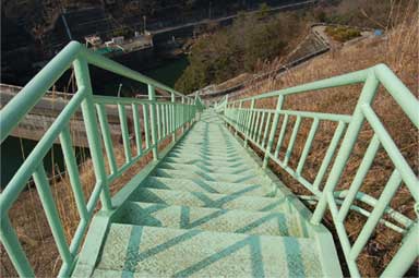 堤体から管理所まで徒歩で最短距離を階段で行くこともできるのですが階段が長すぎます。