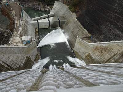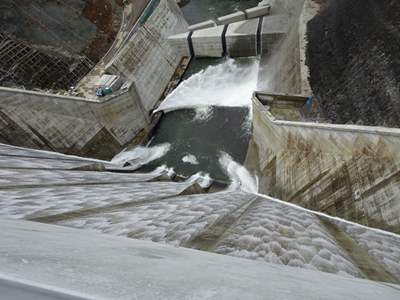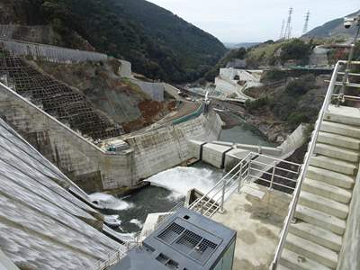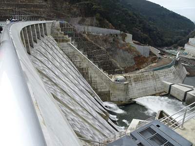 志津見は直線重力式の全面越流頂をもつ国内で唯一のダム。