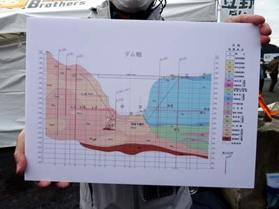 立野ダム、右岸側にながーーいグラウト行っていますので。
