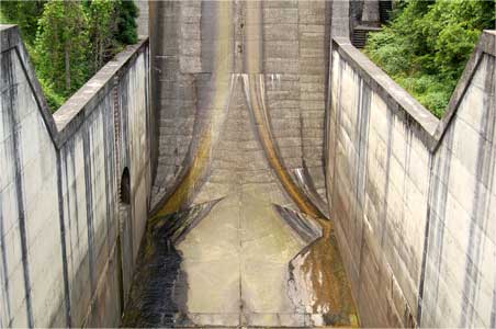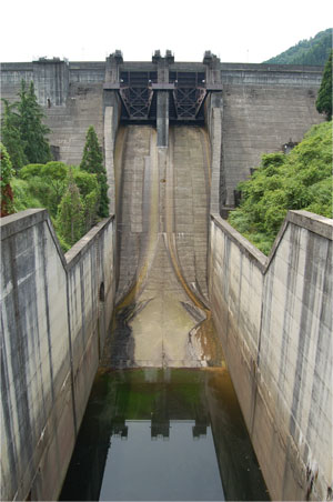 手取川第三ダムの特徴はこのエプロンです。