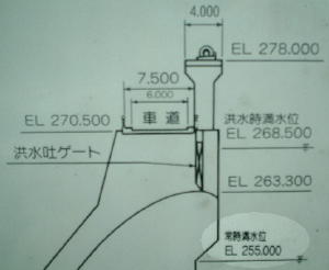 非常用の洪水吐きのゲートは見えていますがこれは当り前です。