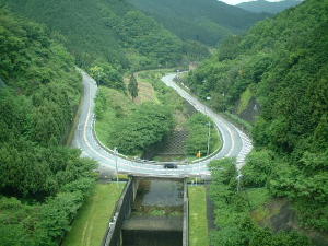 減勢工にかかる滝本橋の前後はこの通りのヘアピンカーブです。