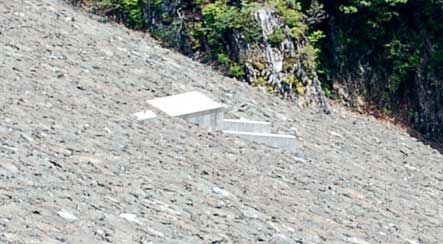 しかしこの場所から堤体を見ていて気になるのは下の方にあるこれ。
