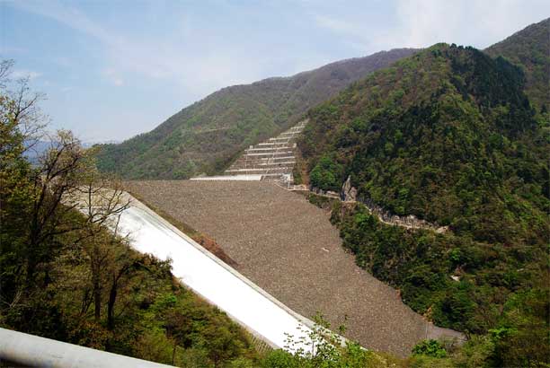 ここはダム下流面展望台です。ここから見える風景を紹介します。