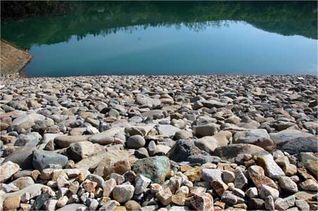 上流面だけを見ると河原のような吃驚丸石リップラップ。