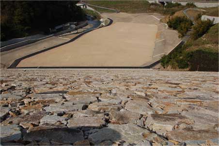 そして下流面は石張り舗装路かという位の完璧な成形っぷり。