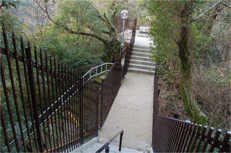 更に下へ堤体に続くこんな素敵な緑の苔生し階段が続いているんですが
