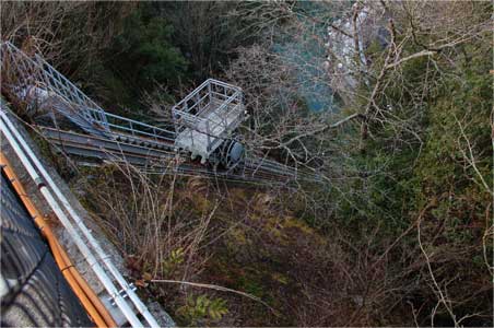 なんといきなりインクラインの台車が降り始めています。