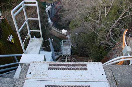 かたこん かたこん と降りて行く台車と隠れていた堤体♪