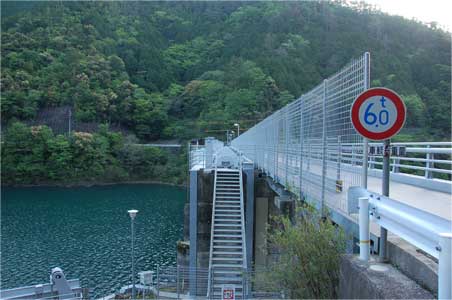 津賀ダムは天端橋梁を設置して両岸を繋いでくれていました。