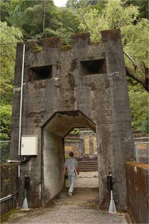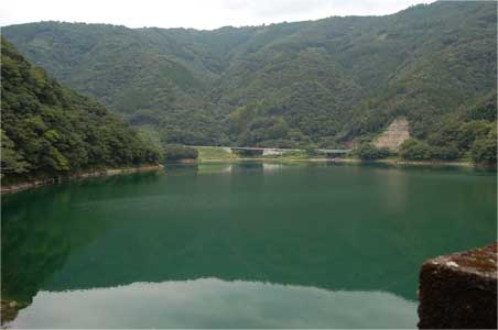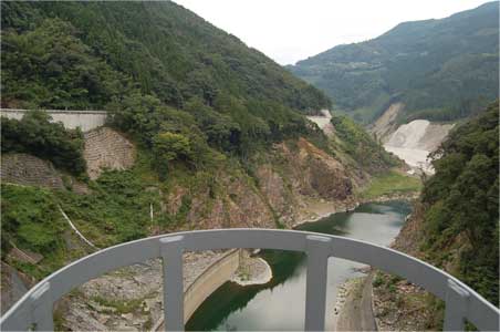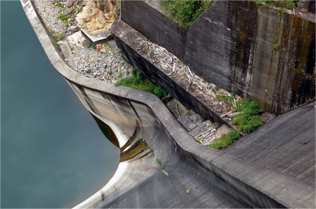 右岸の堤趾導流壁と減勢池の壁の切り替え部