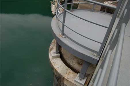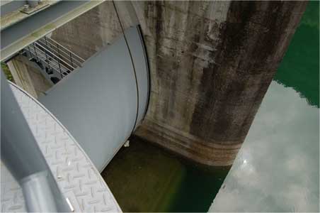 嵩上げされたゲートピア部分から新しいゲートの上流面を間近で見たところ。