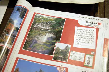 この瀬戸市の観光地を紹介している雑誌にも素晴らしい馬ヶ城ダムに越流写真が。
