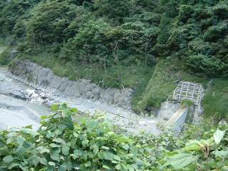 藪の向こうにしばらく探すと副ダムが見えました。砂防ダムの形です。