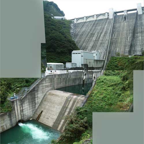 はっきり言いまして、堤体から減勢工まで続く導流壁の間のエプロンの辺りです。