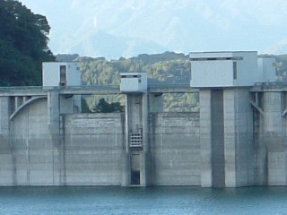 ダム湖側からの絶景ポイントで堤体を見ながら