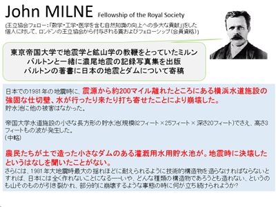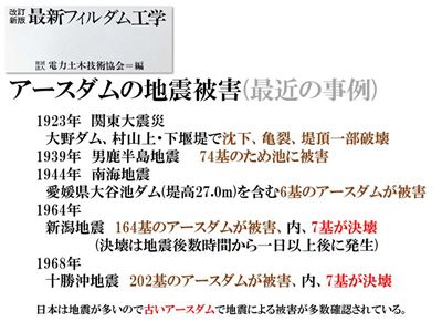 日本では土堰堤は地震で決壊しているんだよ!!と。