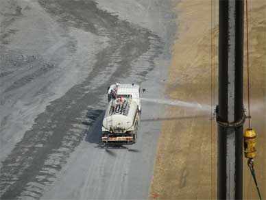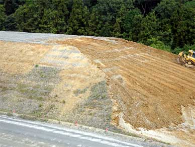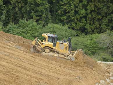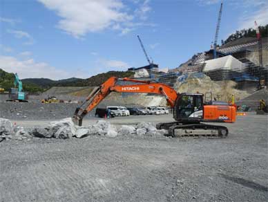 層になるように盛られているのがこちらのコア材仮置ヤードです。