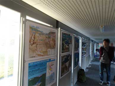 渡り廊下に並ぶ展示パネルです。