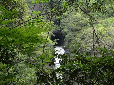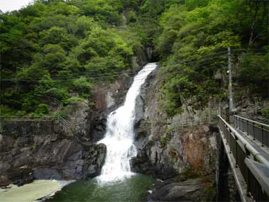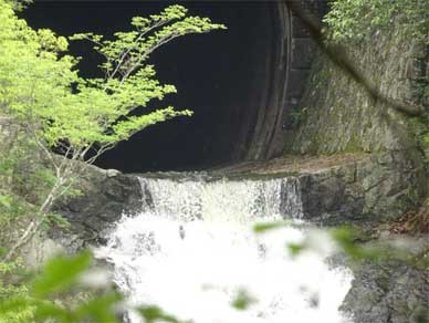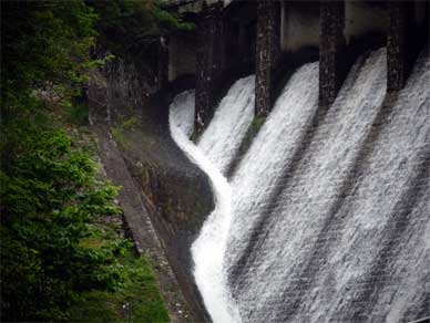 副堤を超えた水は、下から見るとそれなりの瀑布ですが