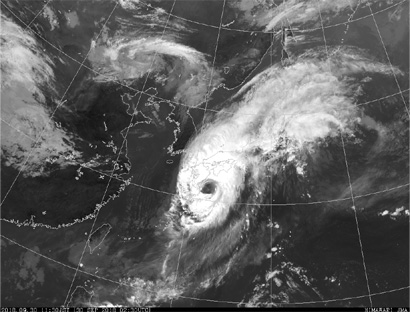 T1824が耳川の上に乗り込んできた平成30年9月30日の天気図です。