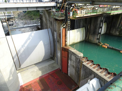 写真中央の扉体は3号ゲートです。