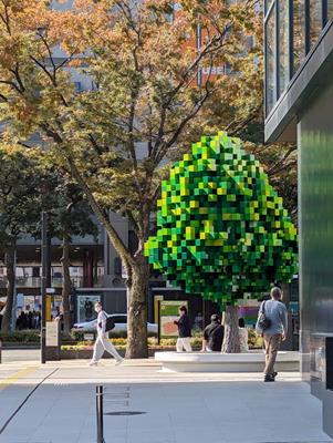 道中、突然、視界に現れたのはマインクラフトの木。