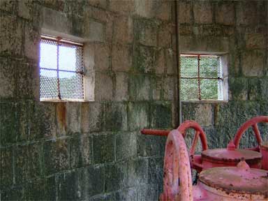 窓にはパンチングされた鉄板(網?)が張られています。