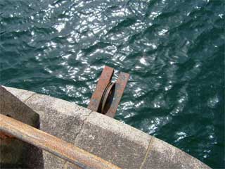 何を吊り上げるために設置してあったのか取水塔の外側に滑車です。