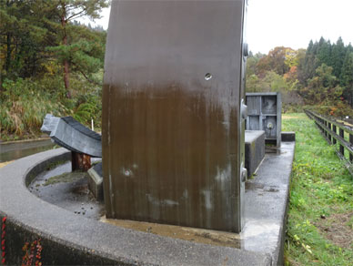 宮中取水ダムの第二取水口から水路トンネルで届いた水が見えていました。