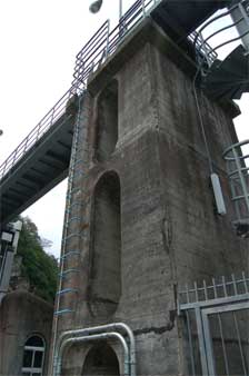 ダム便覧で公開されている古写真(?)ではゲート室は二つでした。