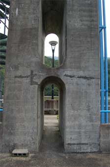 ローラーゲートの支柱にコンクリート節減のためなのかスリットが入っています。
